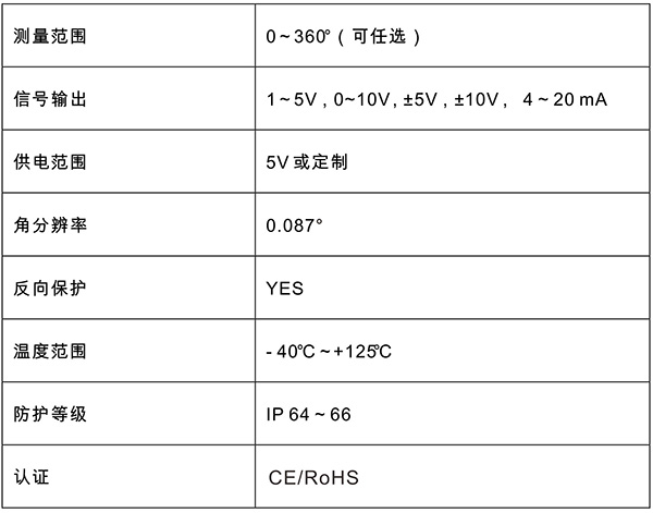 SZ-AG系列非接觸式角度傳感器,采用世界最先進的集成磁敏芯片,利用磁信號感應通過微處理器進行信號處理,將機械角度轉(zhuǎn)化成模擬信號輸出。角度量程(0-360度)以及模擬量信號輸出形式,可根據(jù)客戶實際需求定制。